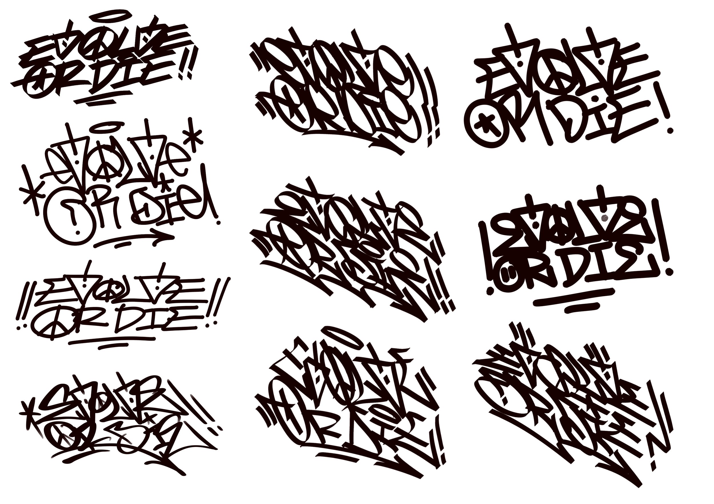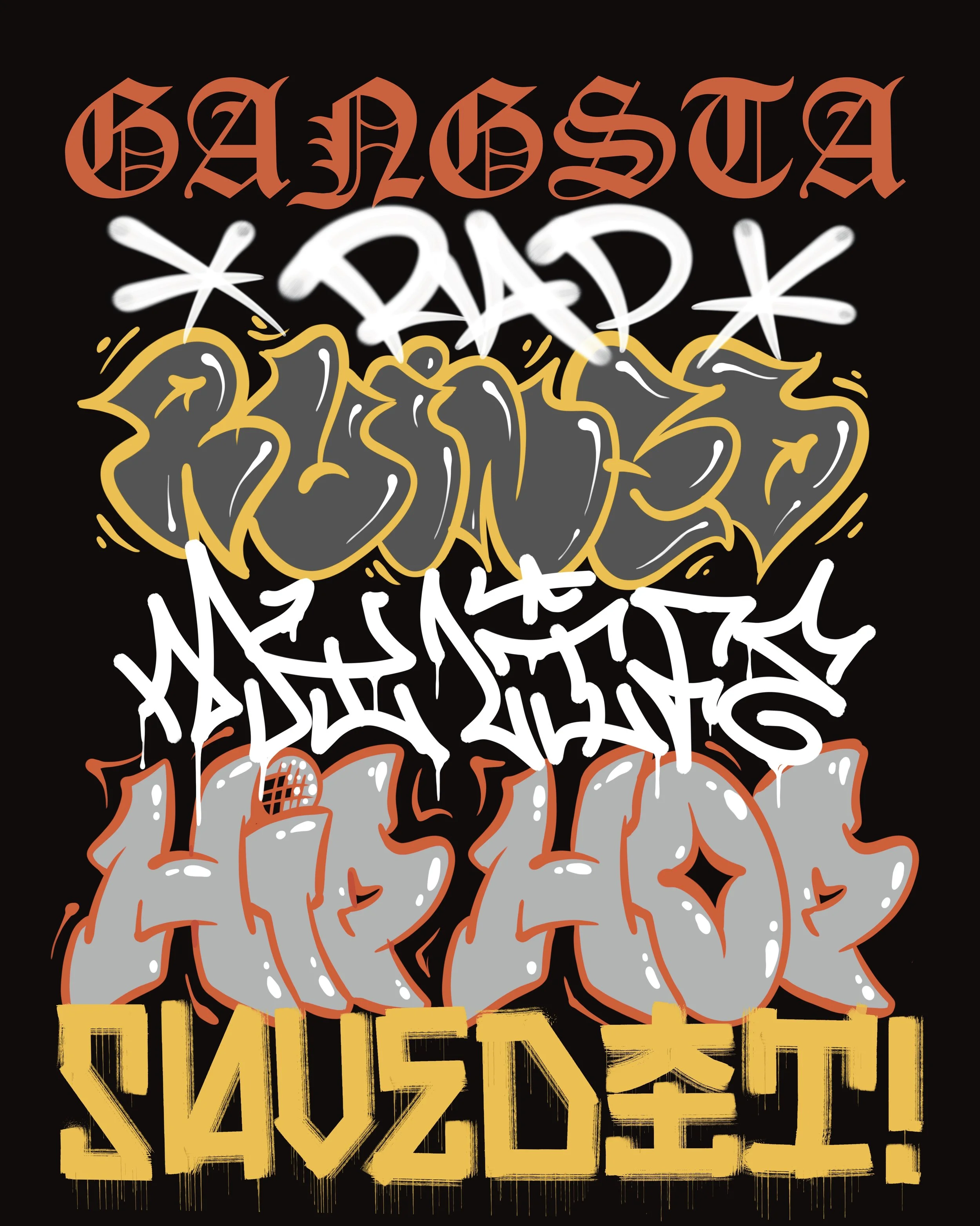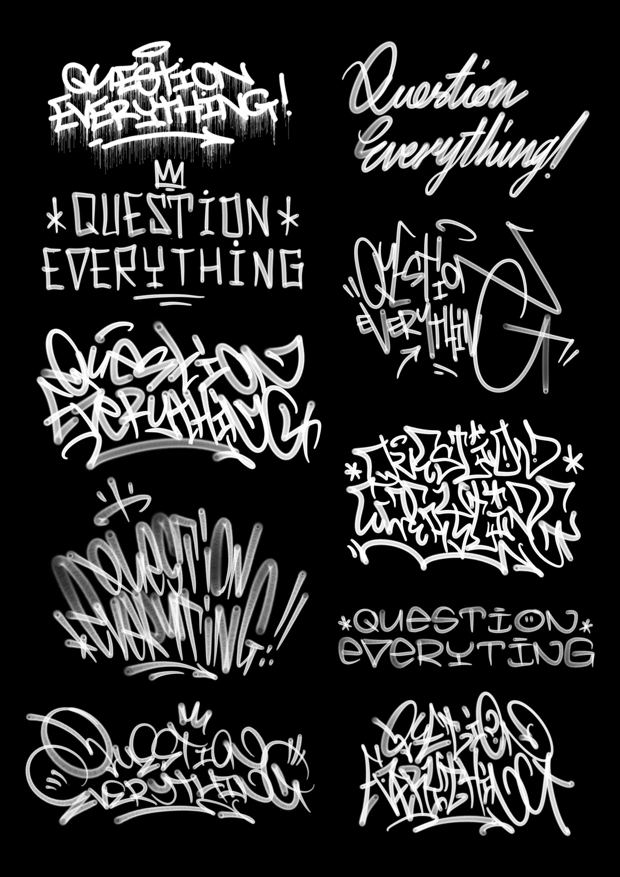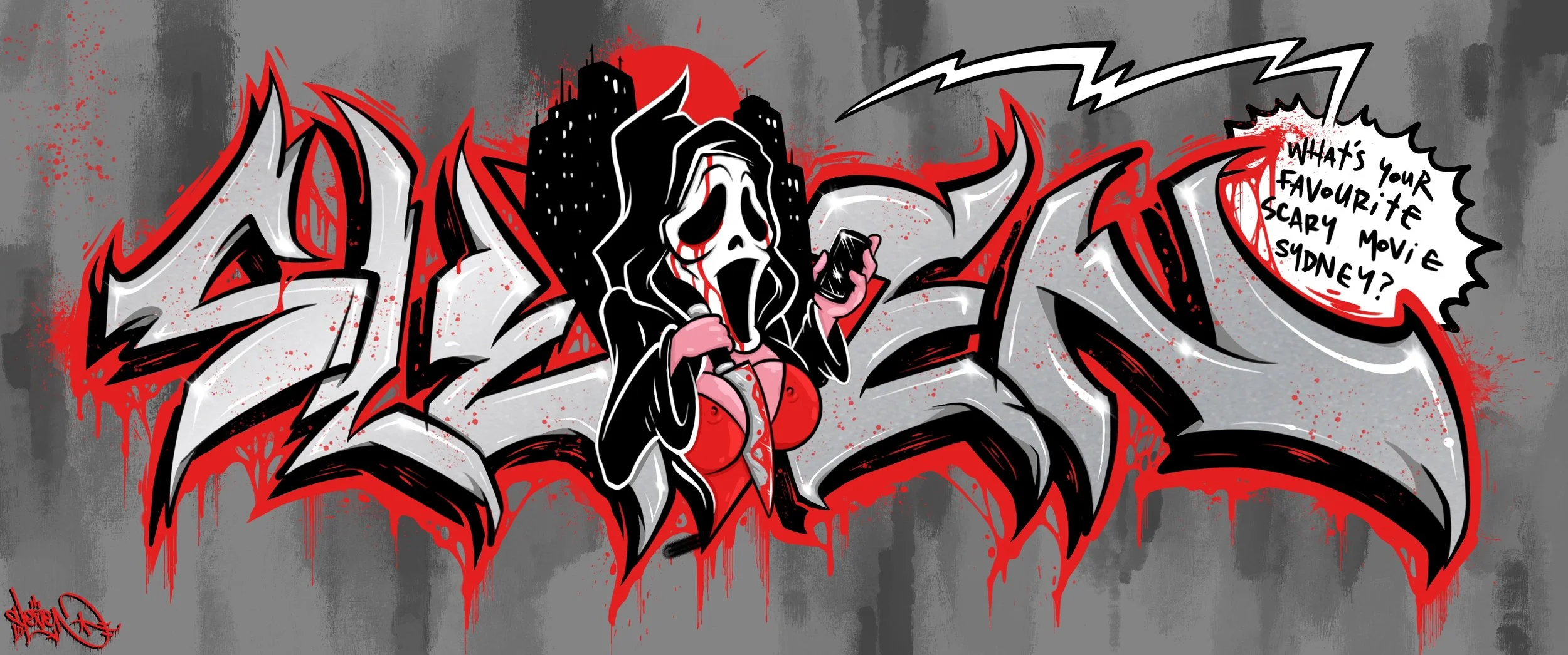 Words that hit different. Whether it’s something Sleven’s penned from his chaotic depths or borrowed from the wise and twisted, this section celebrates the power of letters when they’re dressed to kill. From drippy tags & chiselled calligraphy to bubble gum fonts & hip-hop hieroglyphs, every piece fuses meaning with visual flair. Some stand loud and proud, others creep in subtle, backed by scenes, faces, or moods that match the message. Truth, humour, rage or peace, whatever the flavour, it’s all written with style and soul.
