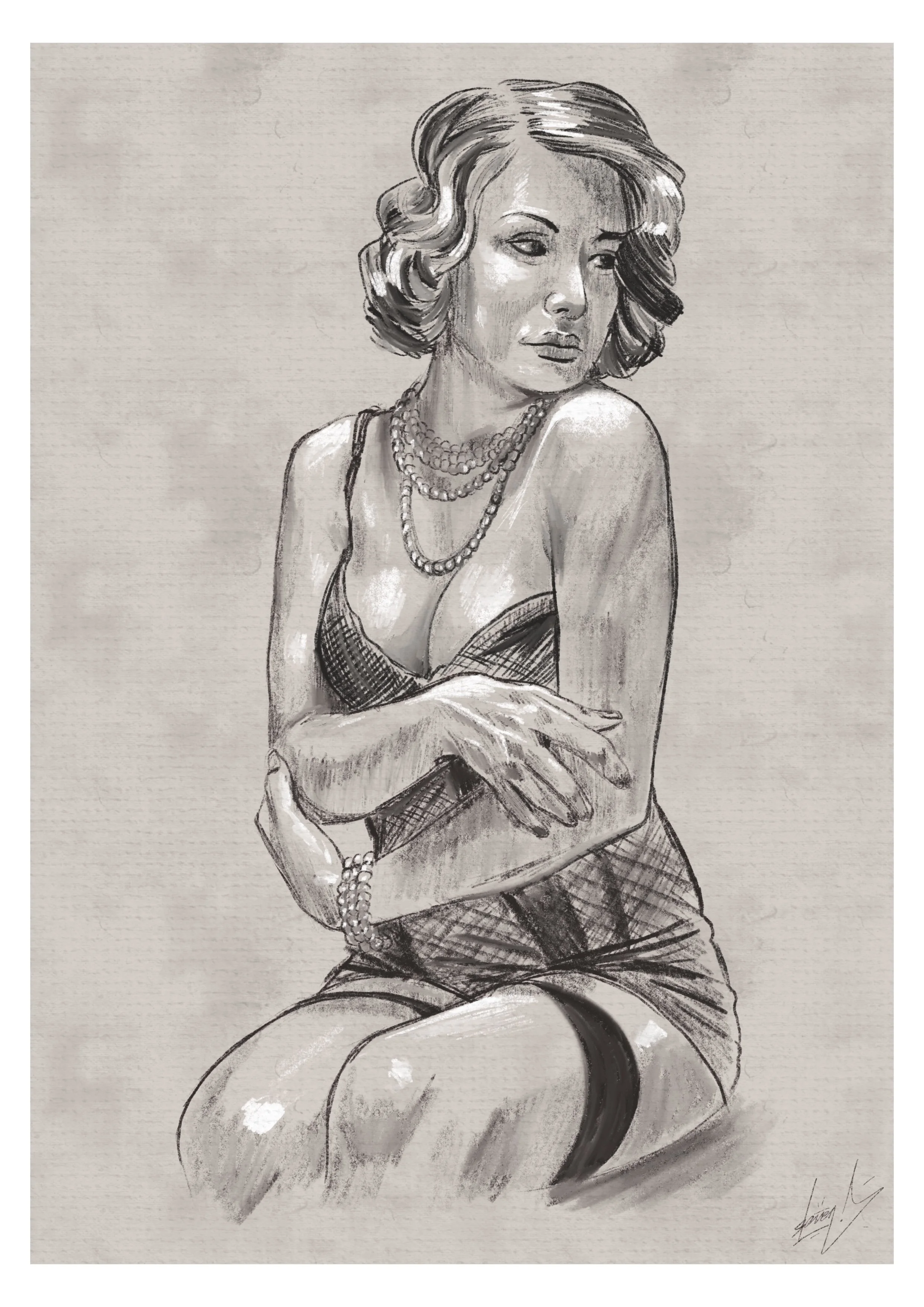 One hour and a half, digital figure study of some old pinup photo, found on Pinterest.