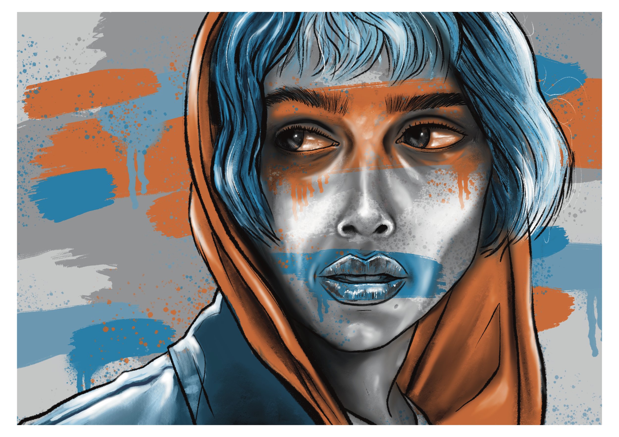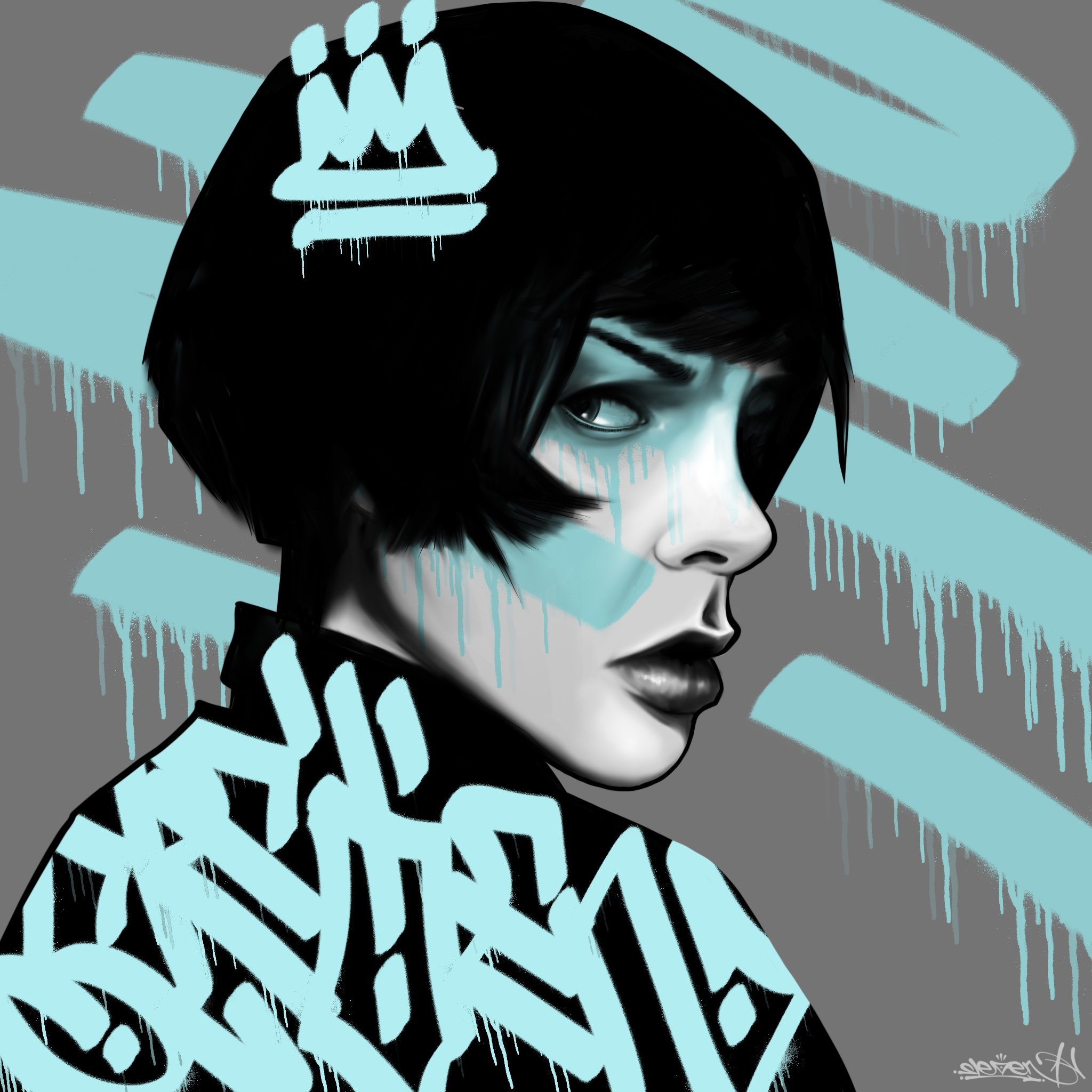 1 hour 32 minutes portrait study, with added drippy graffesthetics