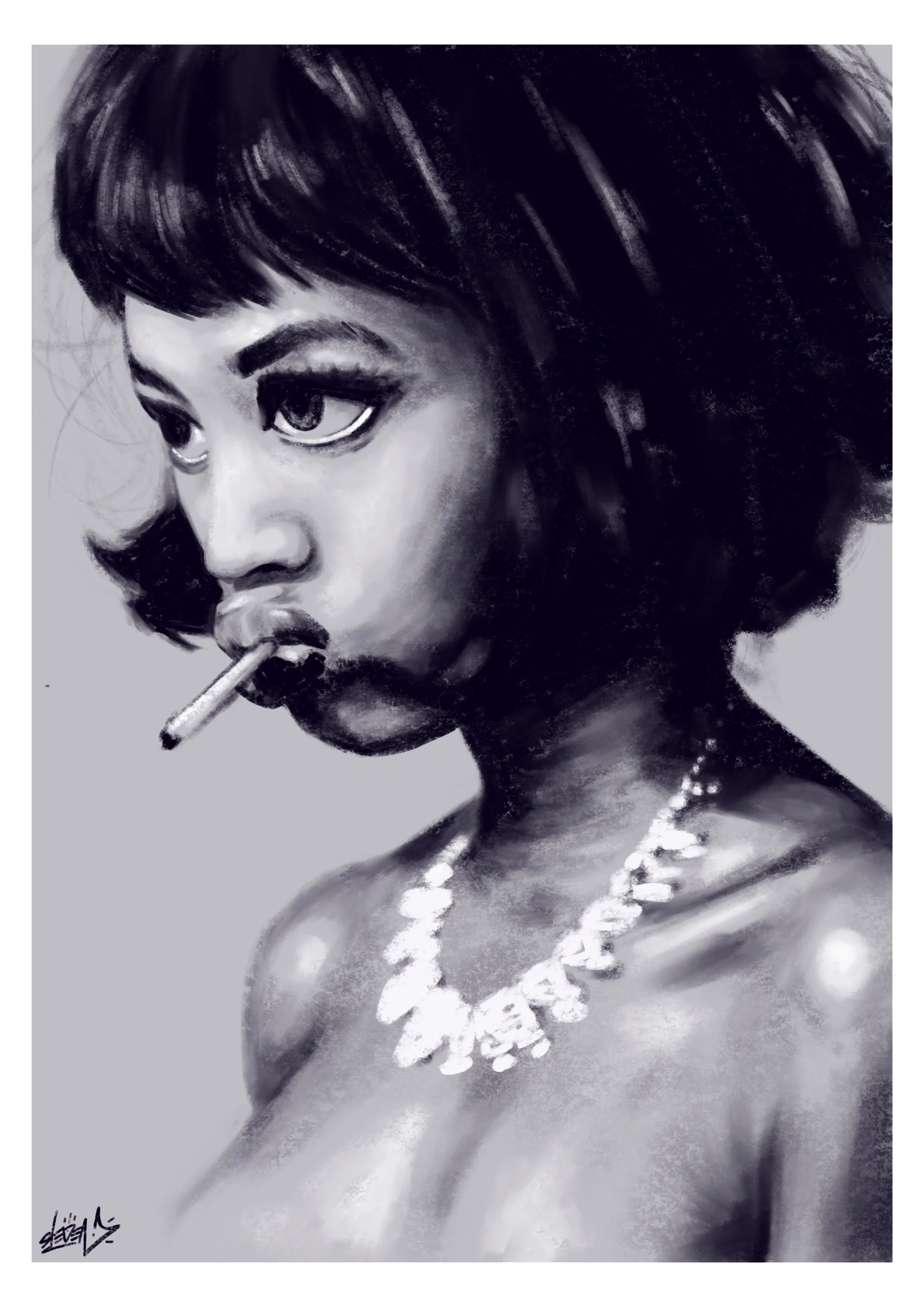 Three hours and eight minute digital study of Zoe Kravitz in the film KIMI. Original image was in colour, the face was changed to black n grey to emphasise the blue hair she has in the film and the clothes that match she wore that match the hair. This ones a tad more illustrative and the even tho she looks a bit gaunt, she doesn't so much in the original photo but it helps emphasise the fear n paranoia she's going through in this scene in the film. Decent little thriller, definitely worth a watch.
