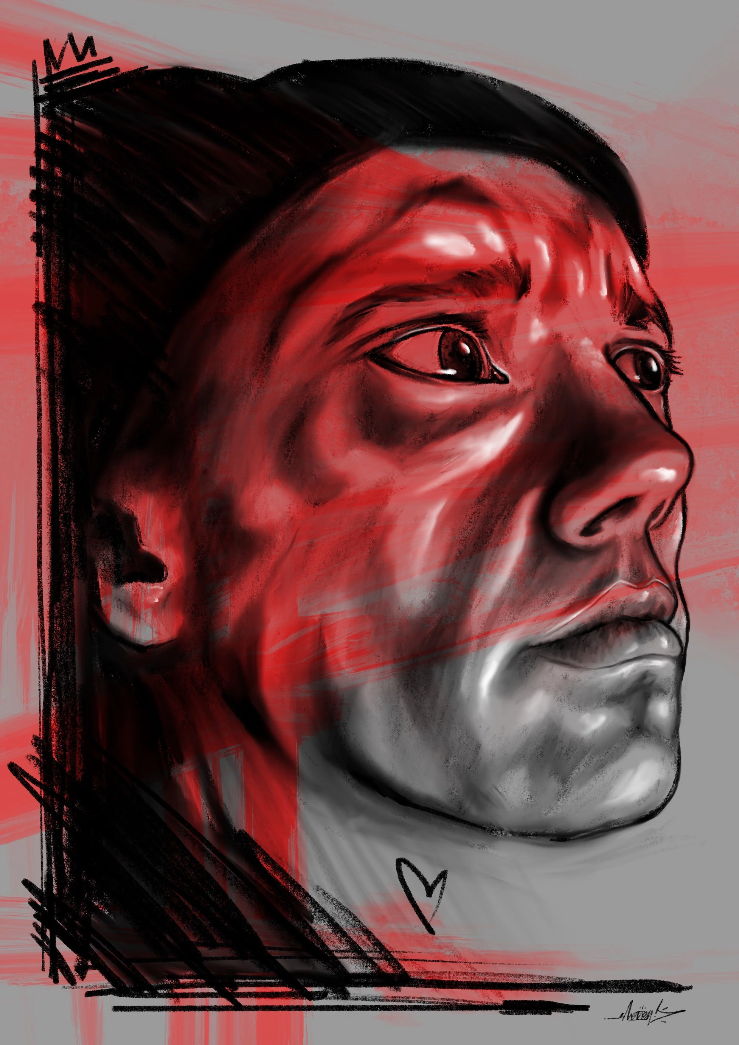 8 hours and 2 minutes digital portrait study. Using a flat brush for everything apart from the hair, which was a combination of that and an airbrush. Could have gone a whole lot longer with this but was getting board with it and just wanted it as finished as it could be with me being pleased with it.