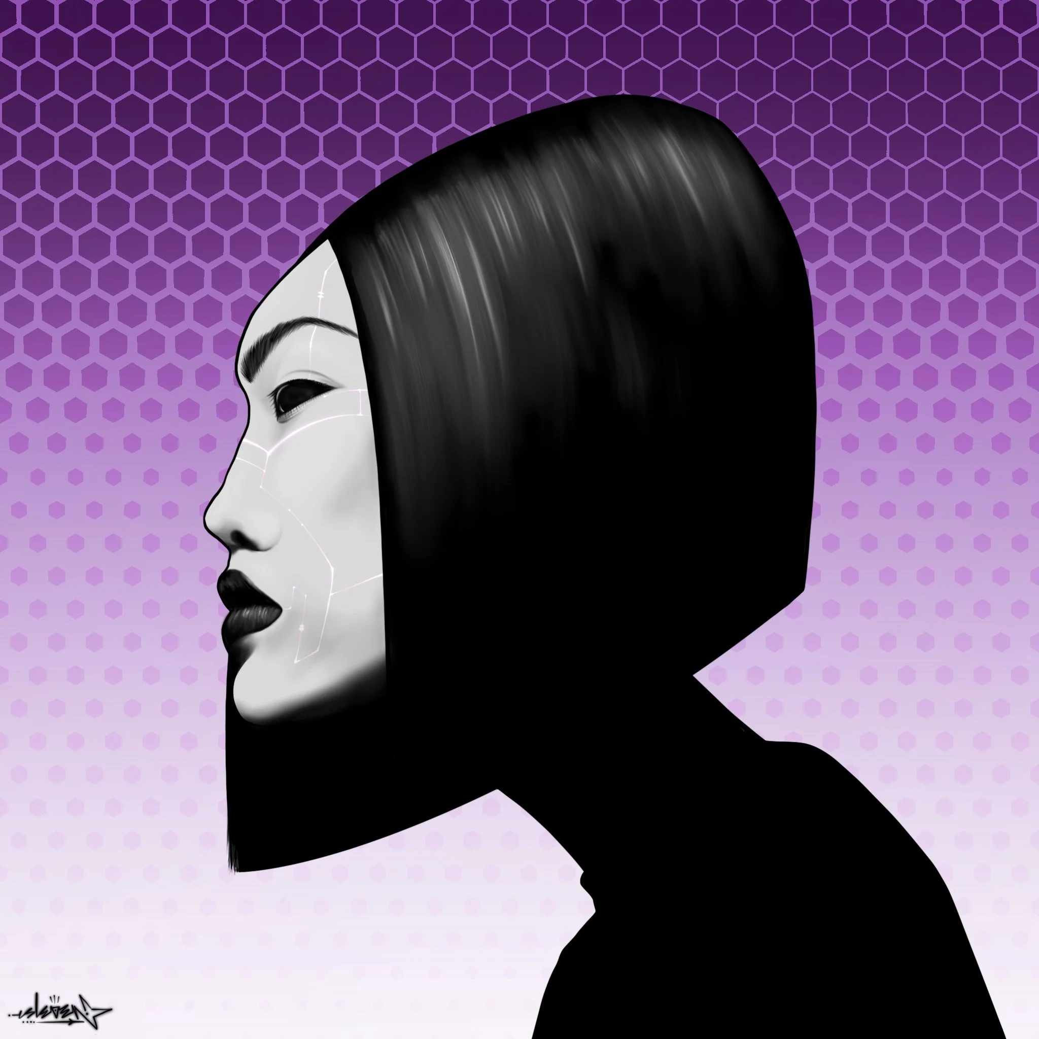 Two hour and thirty minute portrait study. The reference image doesn’t have any of the glowing face plate lines. Them and the background were added to give the woman more of an android aesthetic. Which plays upon her already futuristic, android looking image.