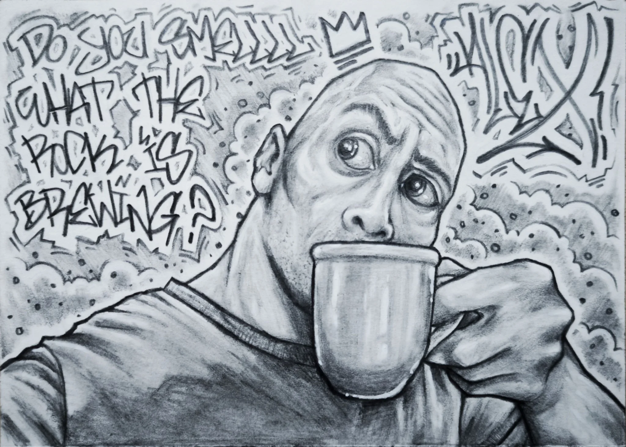 Do you smelll what the rock is brewing! Pencil sketch of Dwayne "The Rock" Johnson, on a paper, for a friends son. Who's a massive Rock fan.