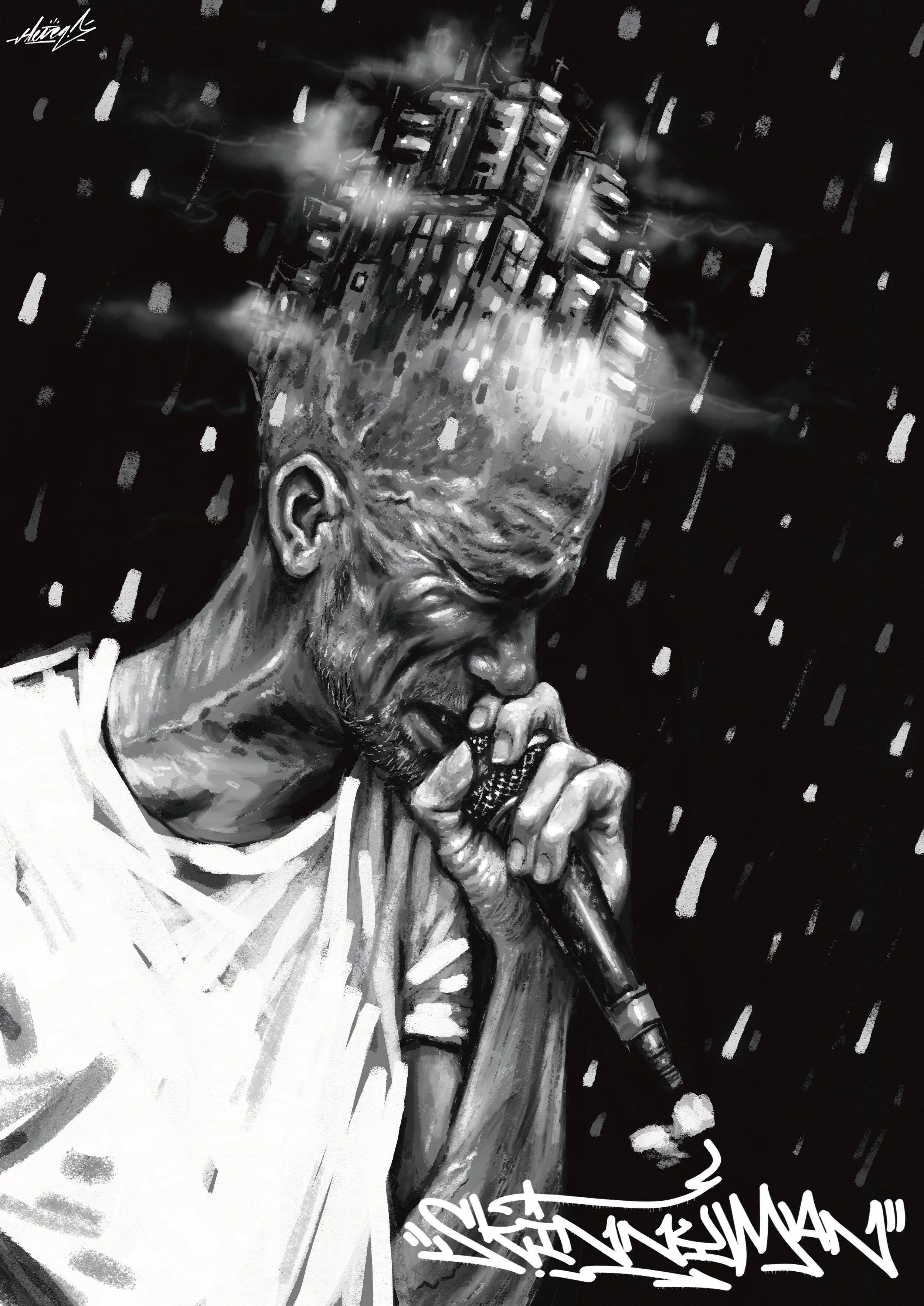 Three hour and fifty minute digital study of UK hip-hop legend Skinnyman. Donning a council estate crown on his head.