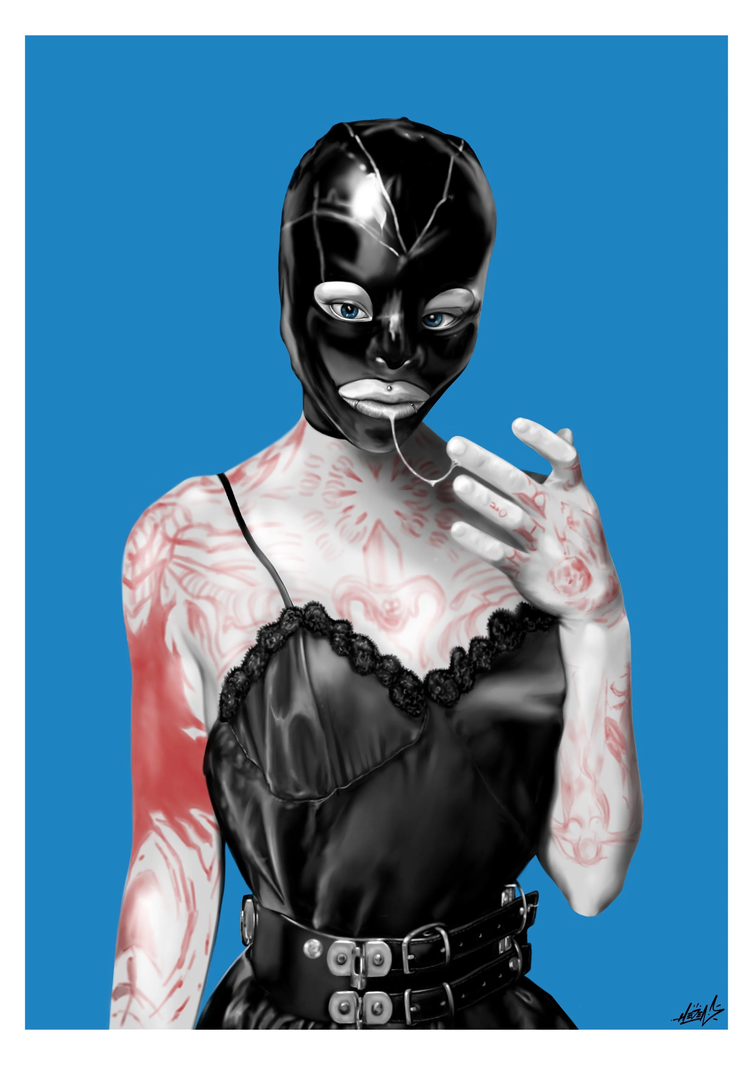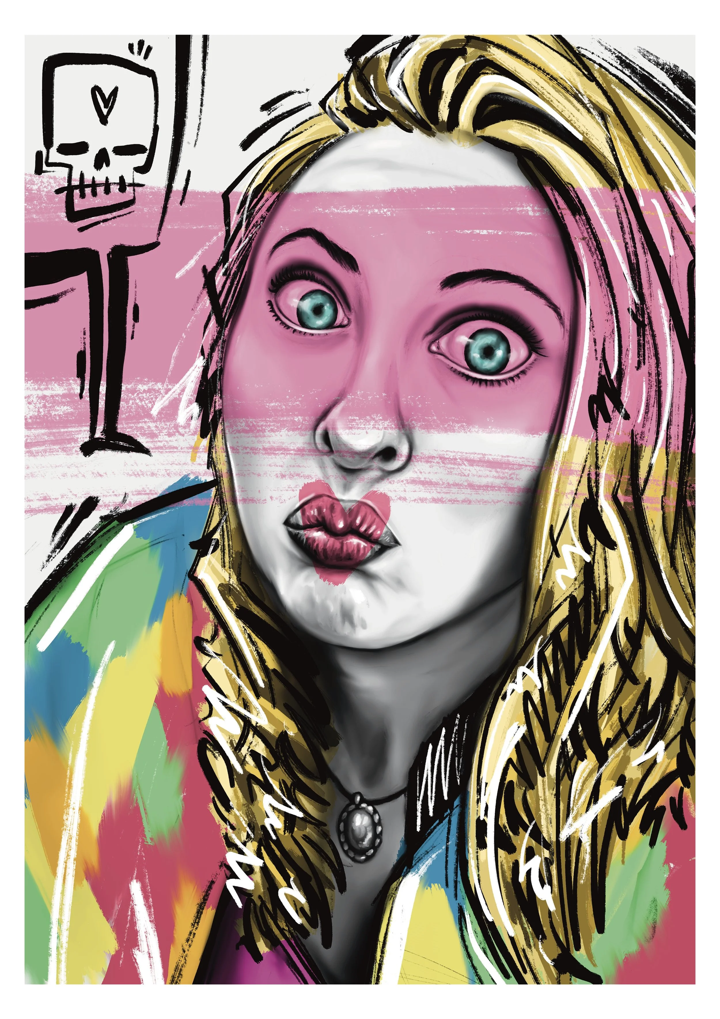 Three hours and forty one minute digital piece created of a friend for her birthday. this lady has a pretty dark sense of humour and often wears light pastel colours, so here she is giving you a kiss of death in a rainbow of pastel shades.
